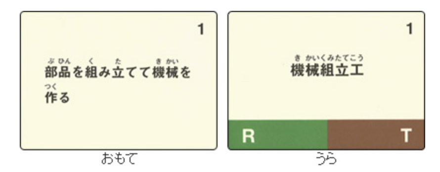 特徴:表面に絵や写真、裏面に文字情報で職業が紹介されている。